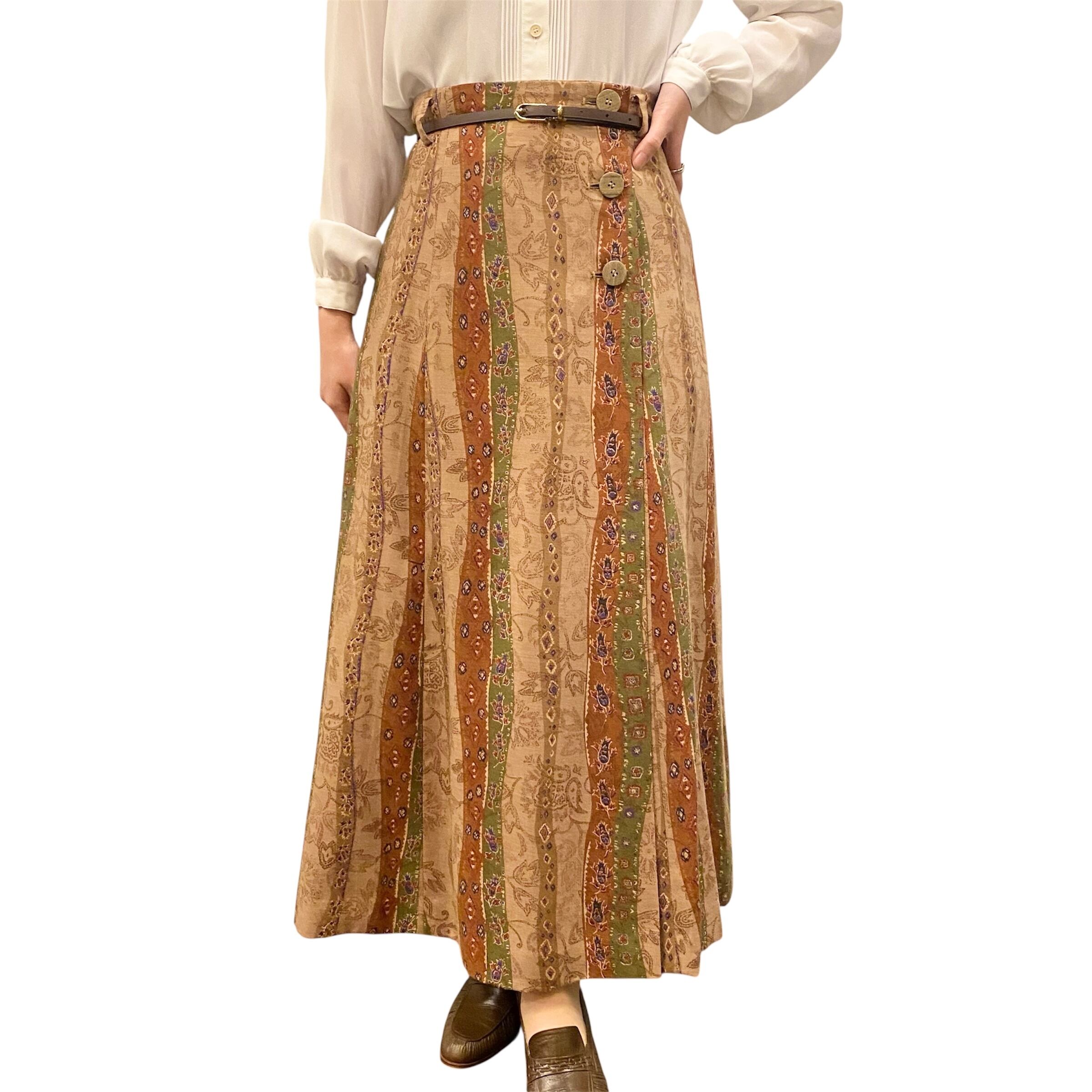木ボタンが大きくて可愛い花柄スカートです。