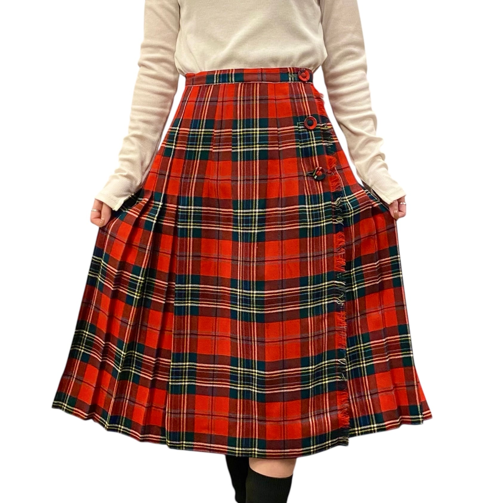 王道タータンチェックの巻きスカートです。