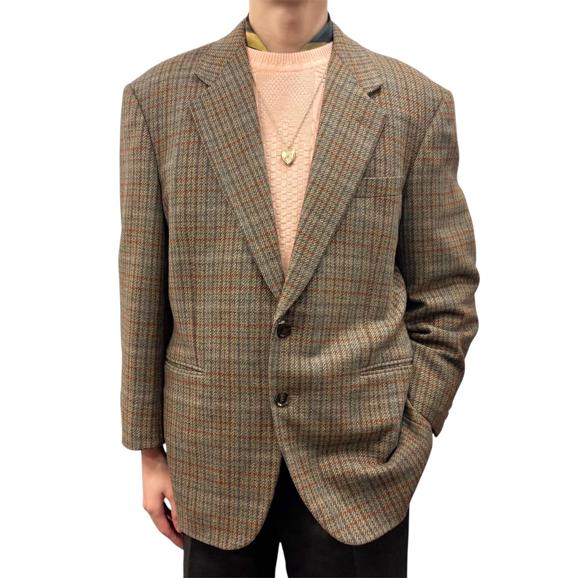 淡い緑をベースに暖色のラインが可愛いデザインのメンズジャケットです。