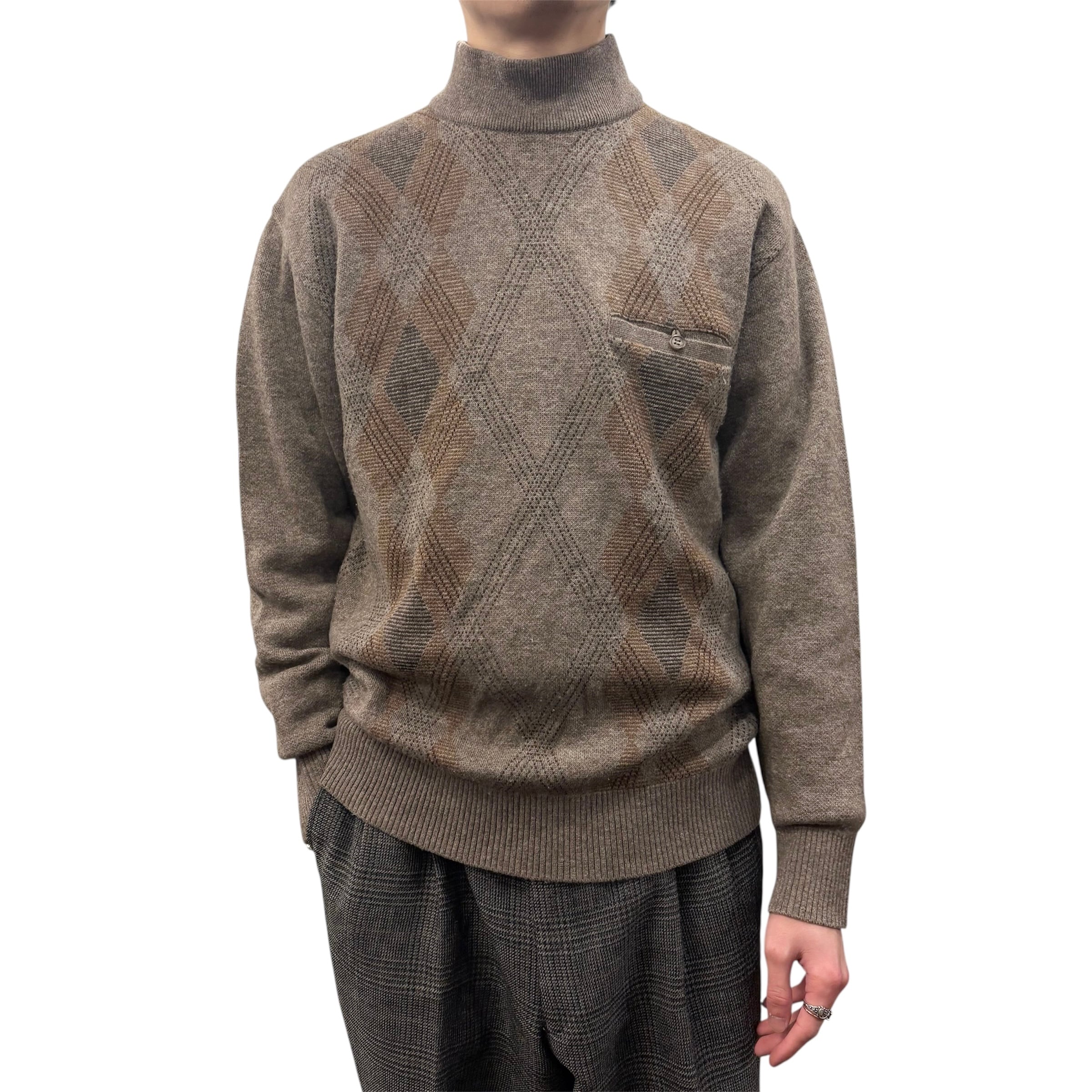 アーガイル柄のメンズモックネックニットです