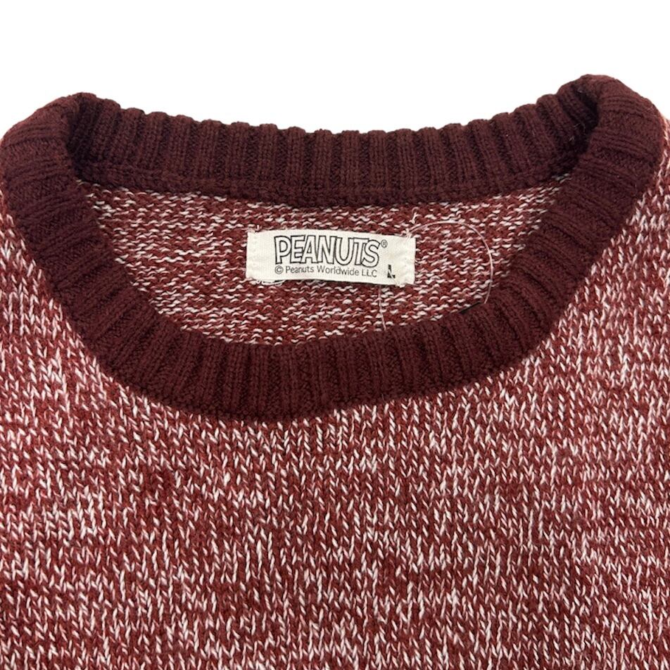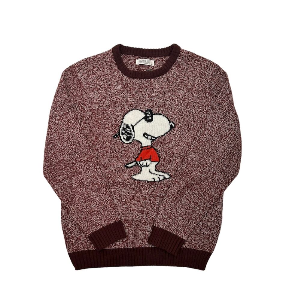 リブの部分が、えんじ色になっていて、スヌーピーがデザインされている、非常にかわいいニットになります!