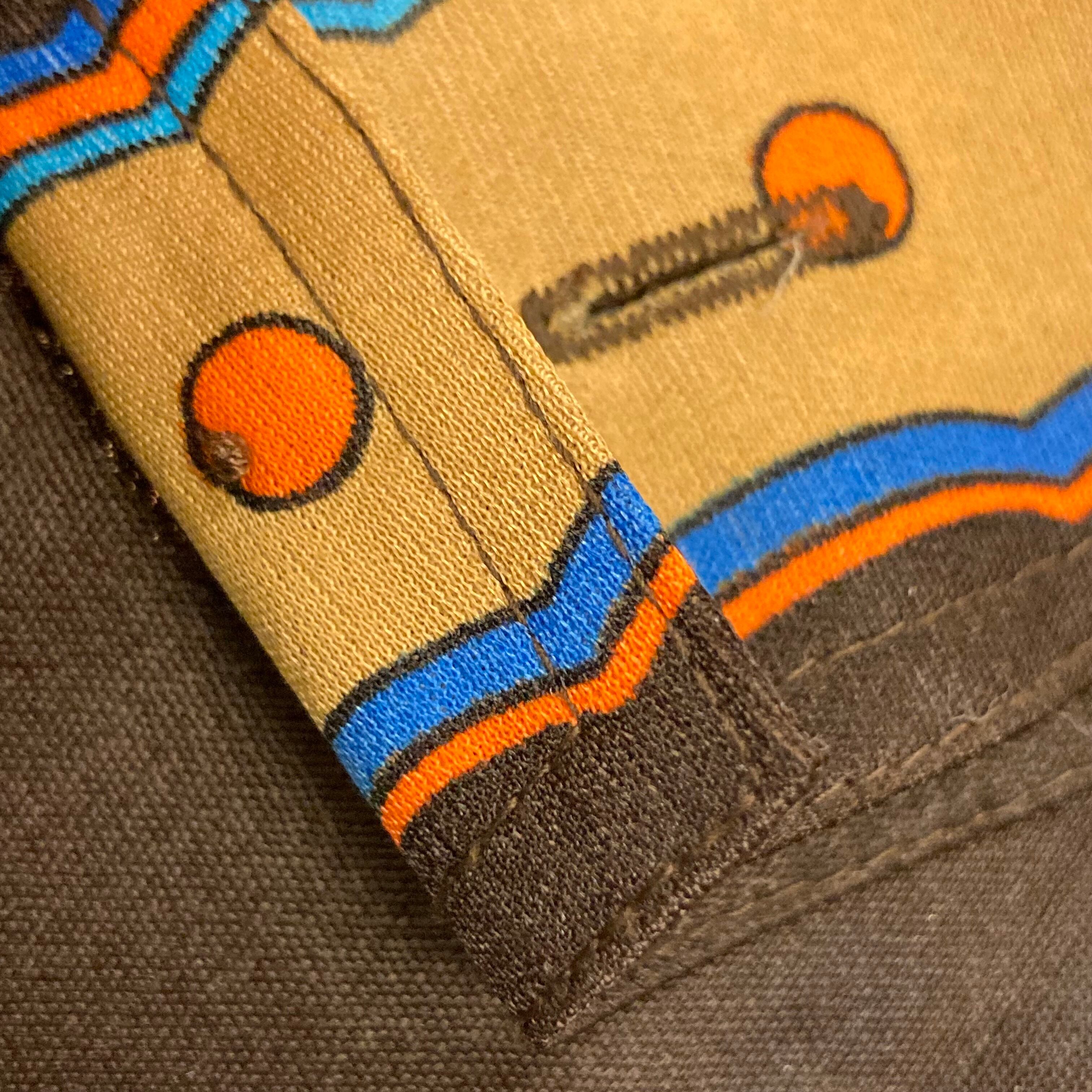 パキッとしたブルーが素敵な柄シャツです。